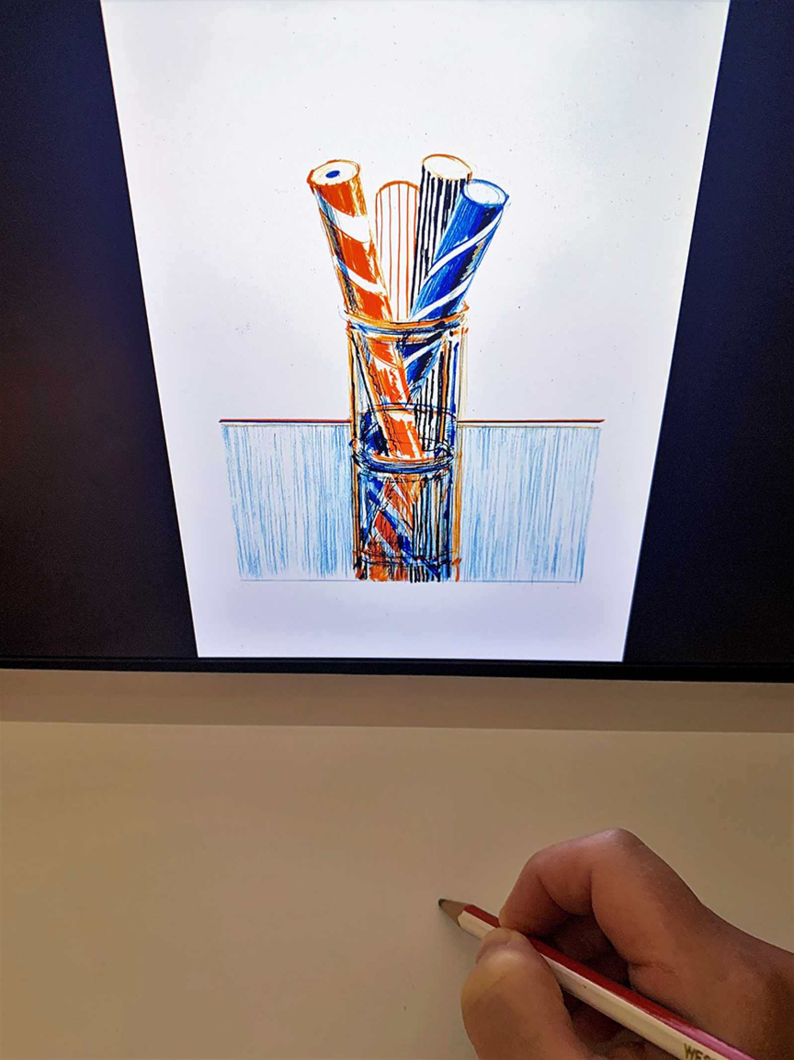 Practice blind contour drawing with the work of Wayne Thiebaud to improve your observation skills and your hand-eye coordination. Blind contour drawing involves focusing on the outline and shapes of an object and drawing its contours without looking at the paper. With this technique, artists emphasize observation—or what they are actually seeing—rather than impressions—or what they think they are seeing.