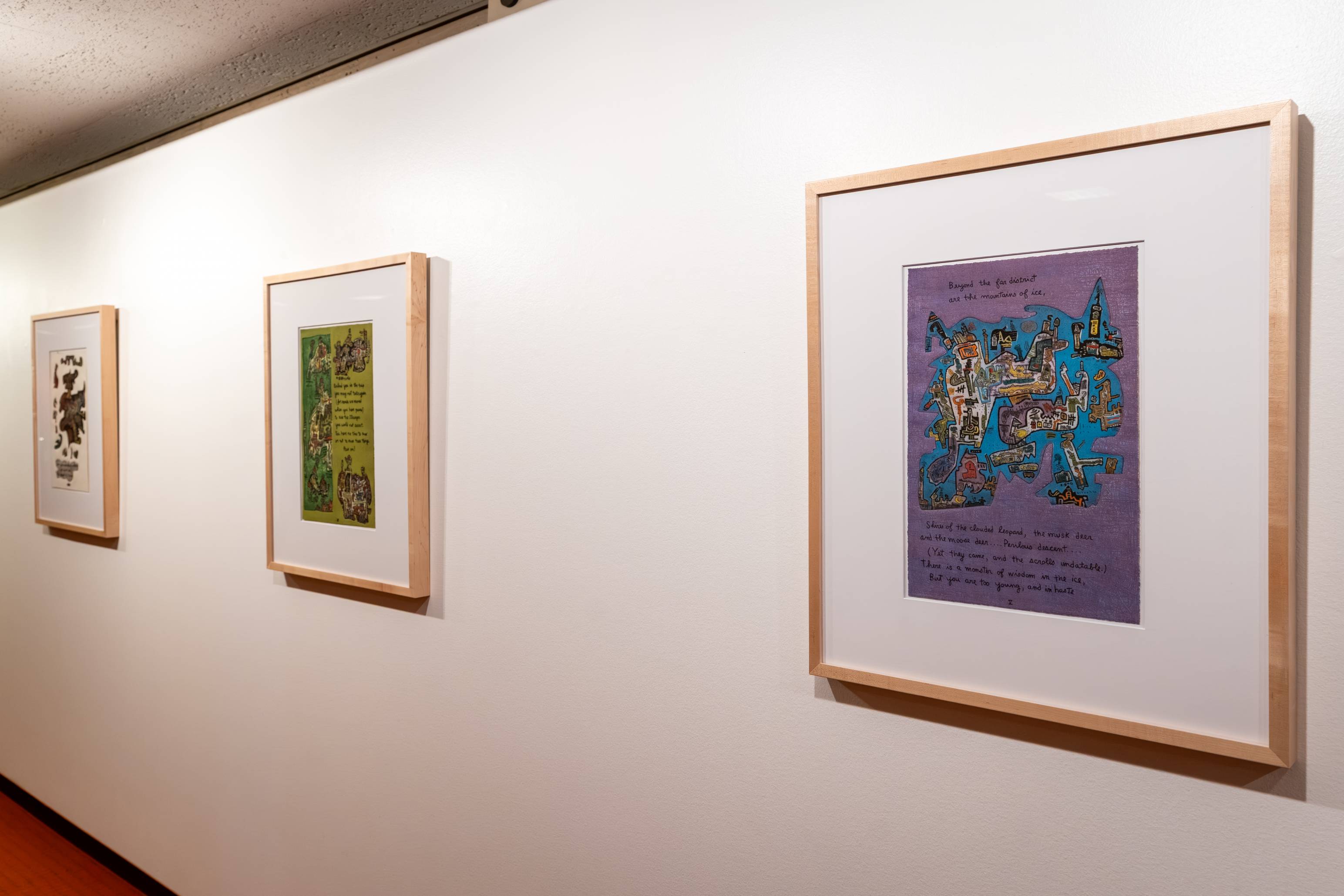 Johnston was born in Berkeley in 1920 and received her BFA and MFA from UC Berkeley in the 1940s. She later lived for decades in Los Angeles with her husband, the writer John Berry, who collaborated with Johnston to write the poetry in the portfolio on display. Johnston’s extensive travels including in Mexico, Italy, and India influenced the sense of adventure in her artworks.