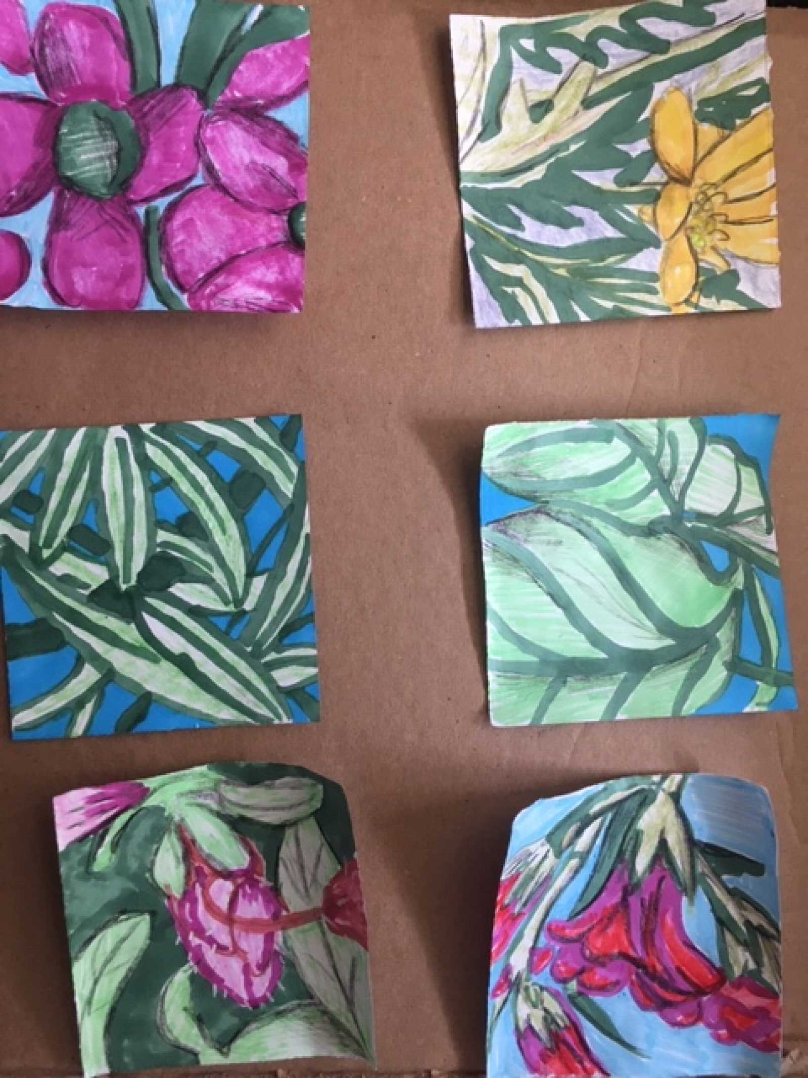 Go outside and observe the colors, patterns and textures you find in your local environment. Then, create your own artistic display.