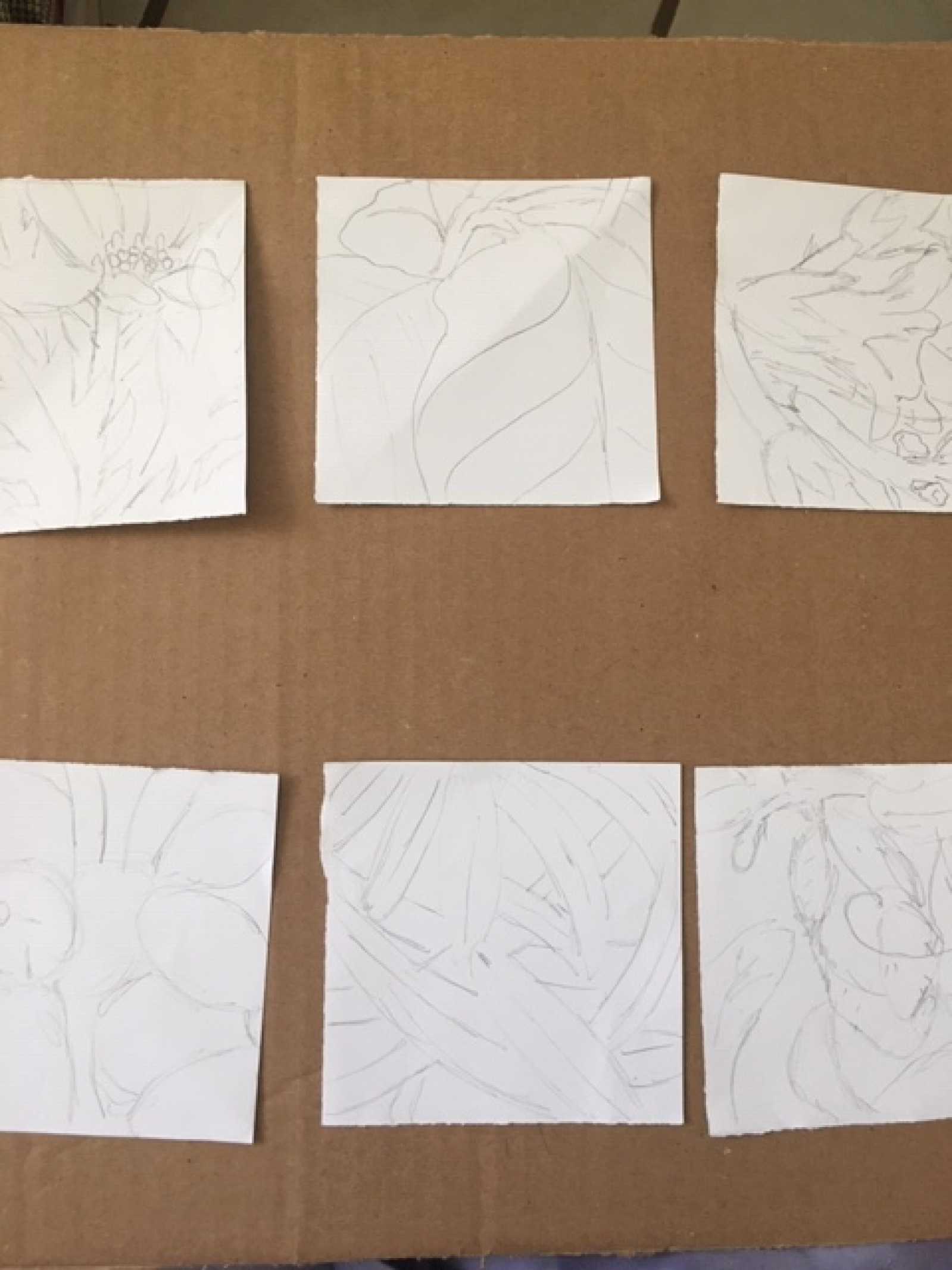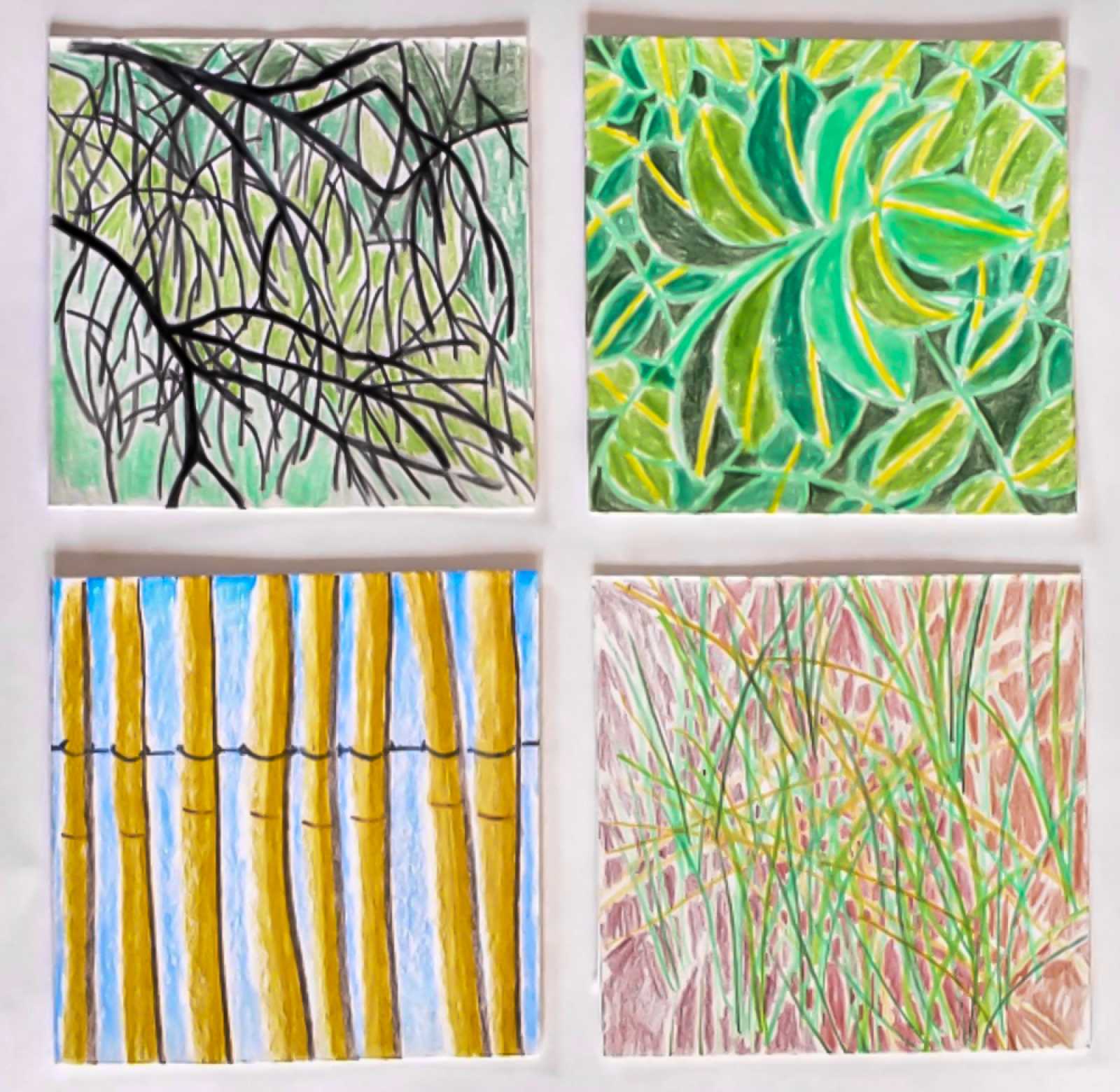 For each image you select, draw your impression of the patterns and textures you see and add color using your preferred medium; use a separate piece of paper for each image.