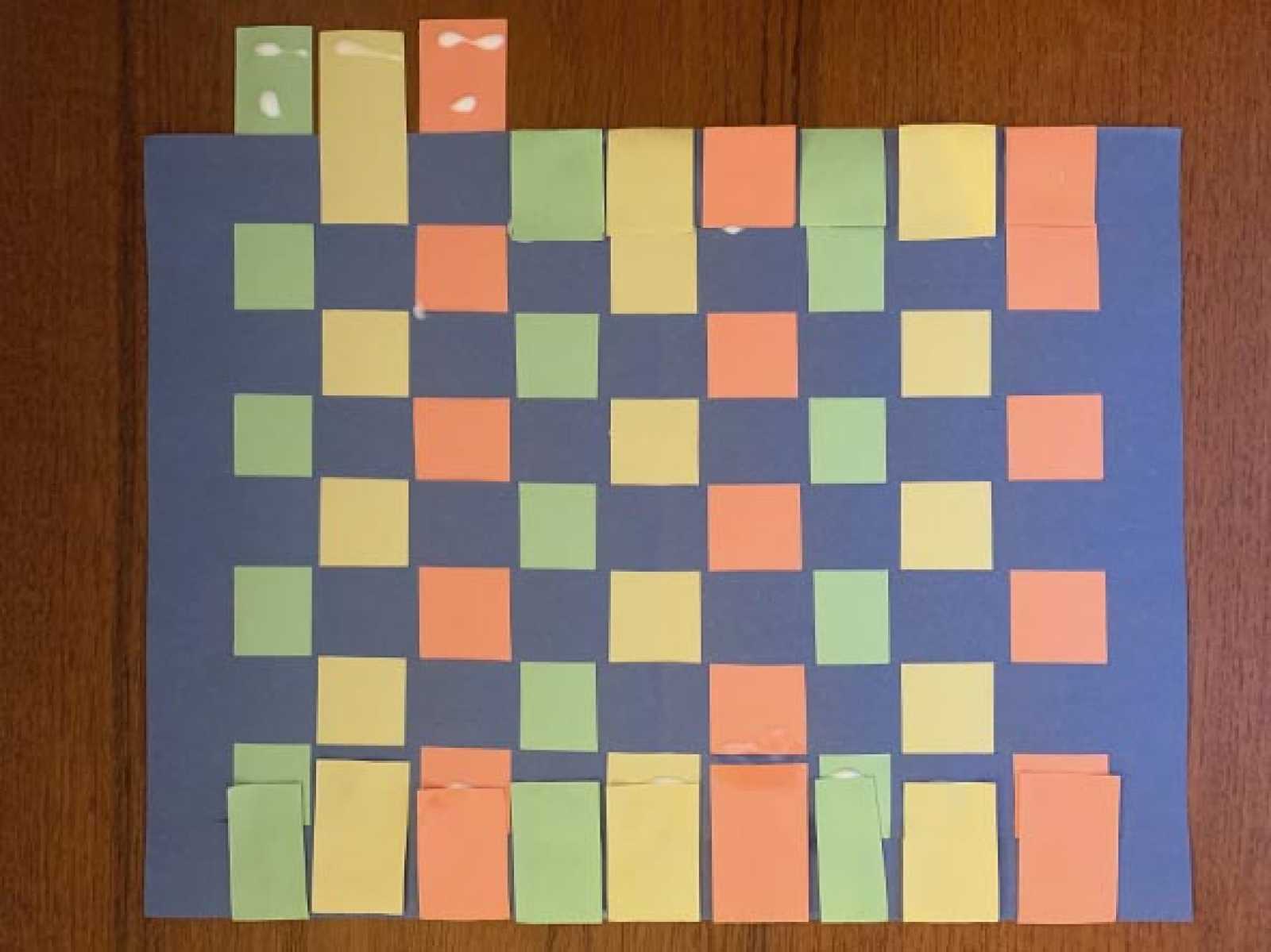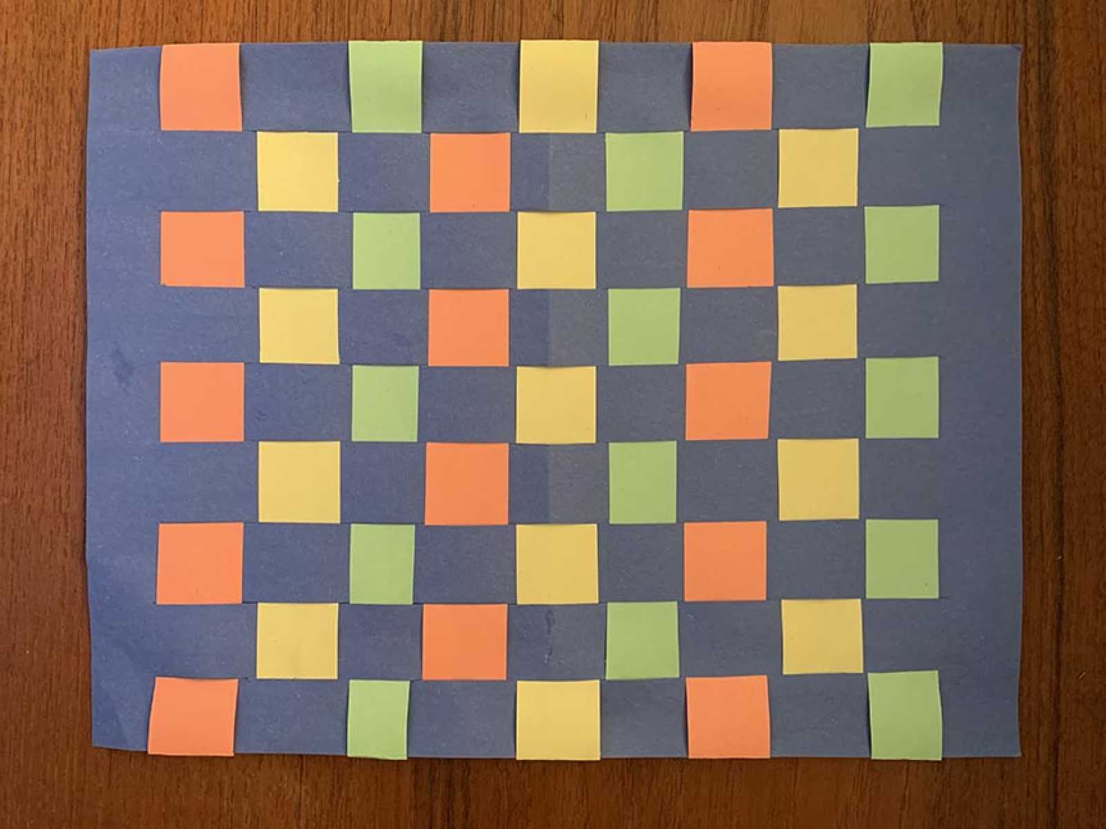 Select three to four colors of paper, keeping in mind one will be used for the frame and the others will be used as “threads.”