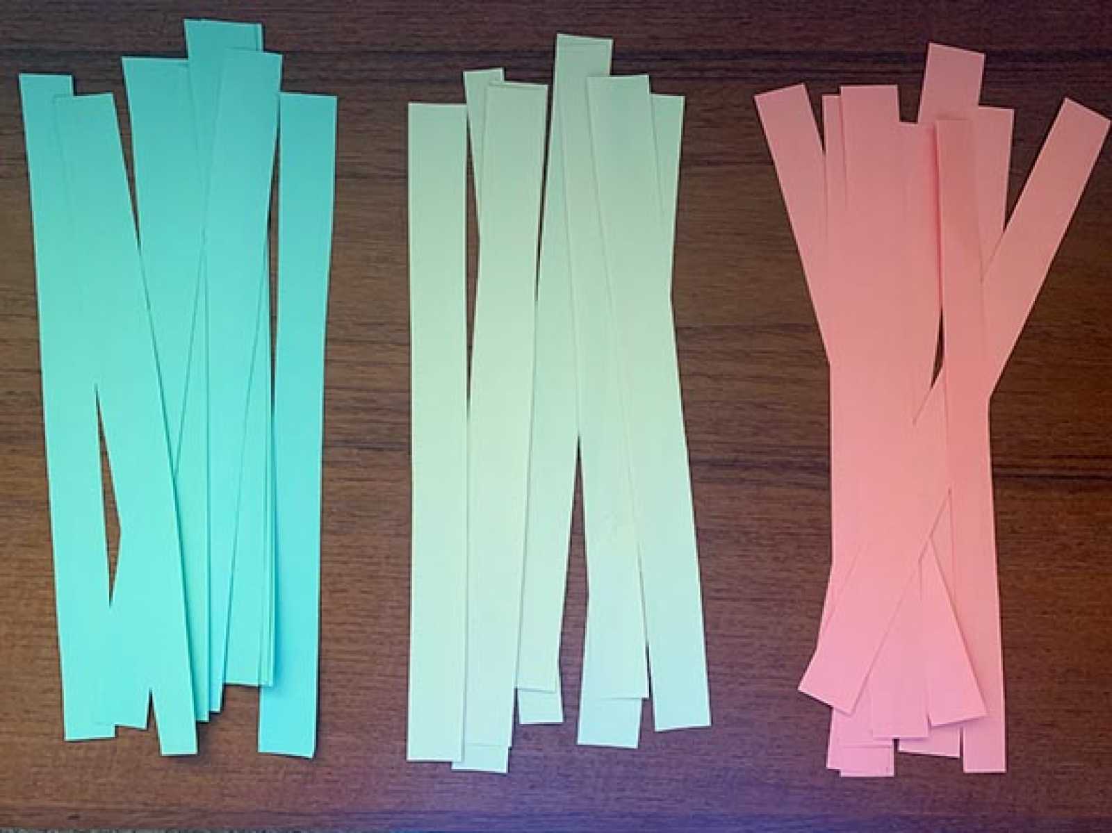 Select two to three different colors, then measure and cut strips of paper that are longer than your frame to create your threads. These will be used to create the weft of the weaving.