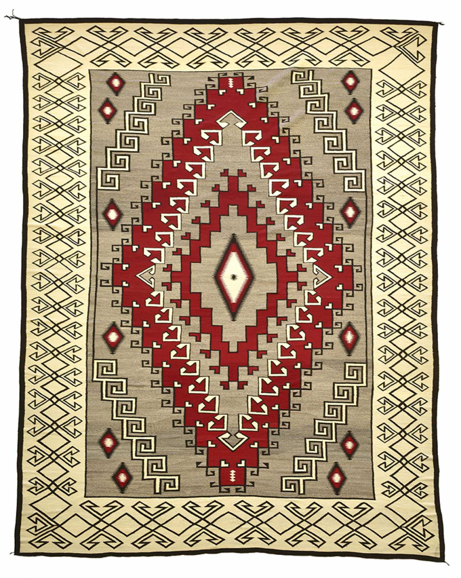 Artist Unknown, Navajo Klagetoh Rug, c. 1930, natural wool and aniline dye (red), 20 feet, 8 inches. x 13 feet, 3 inches. Gift of Stephen H. Field, R2017.12.