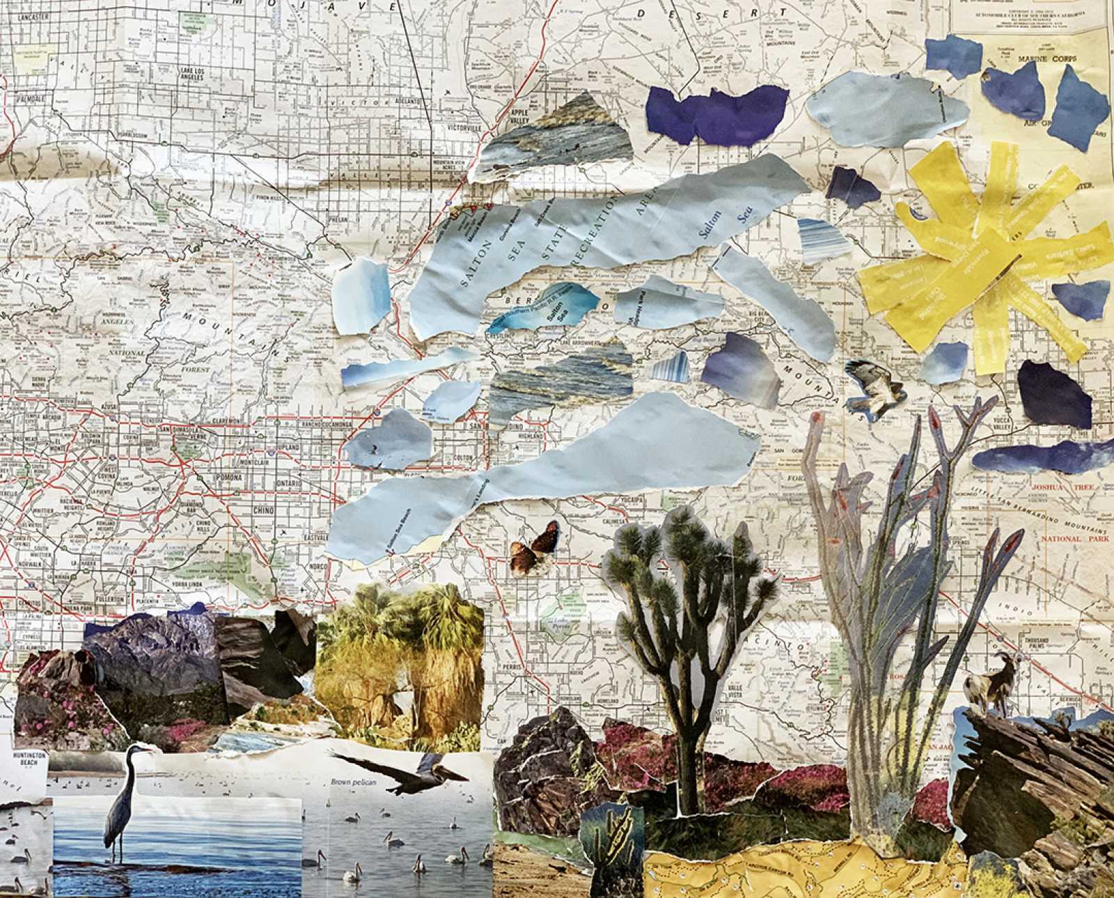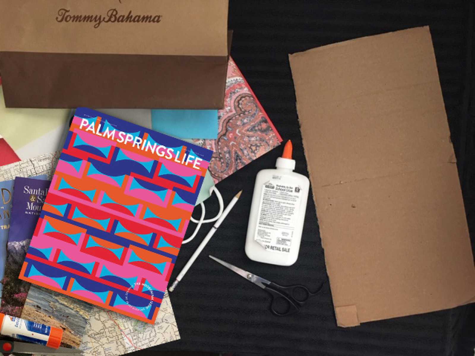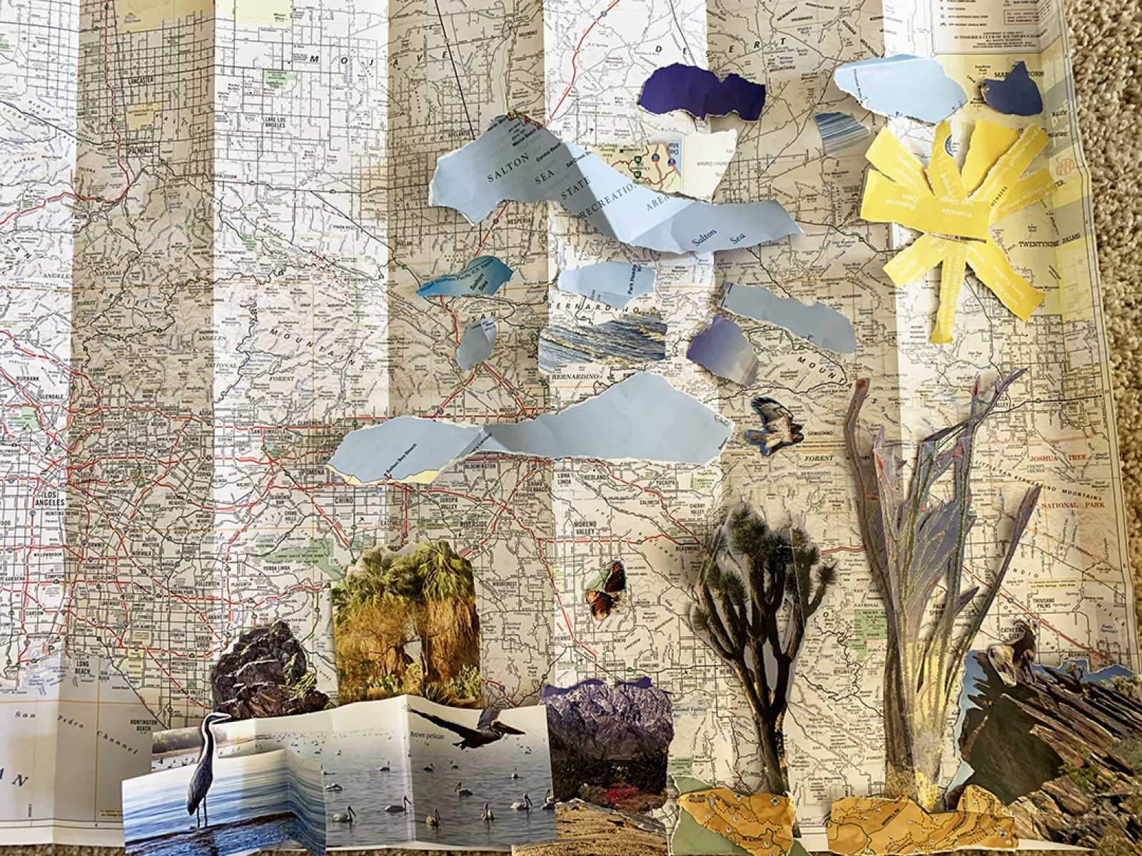 Use found materials like magazines, newspapers, maps, postcards, photos, or wrapping paper to create your own work of art—a collage.