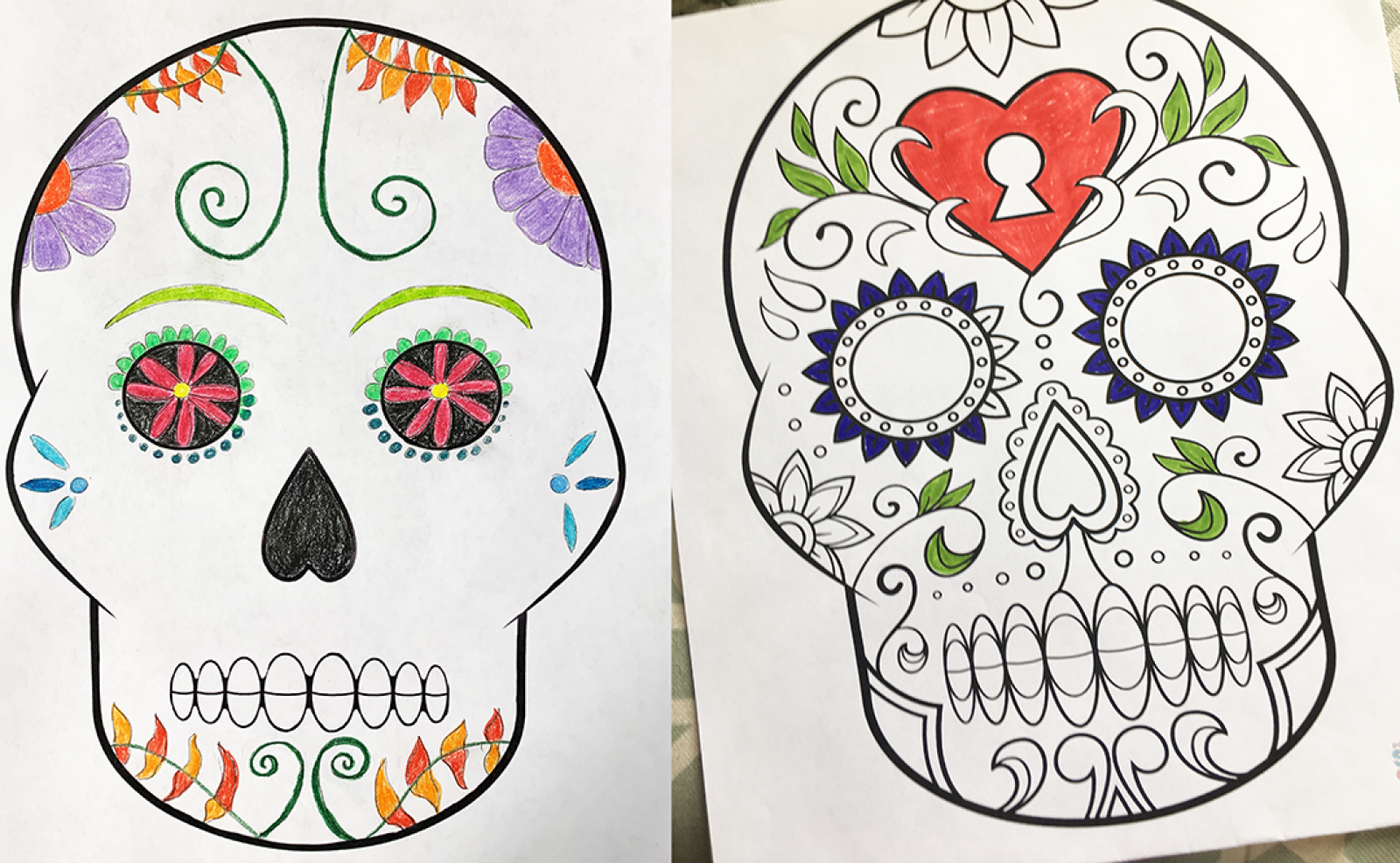 Color and decorate your own Calavera. Calaveras are skulls and are an important part of Día de los Muertos.