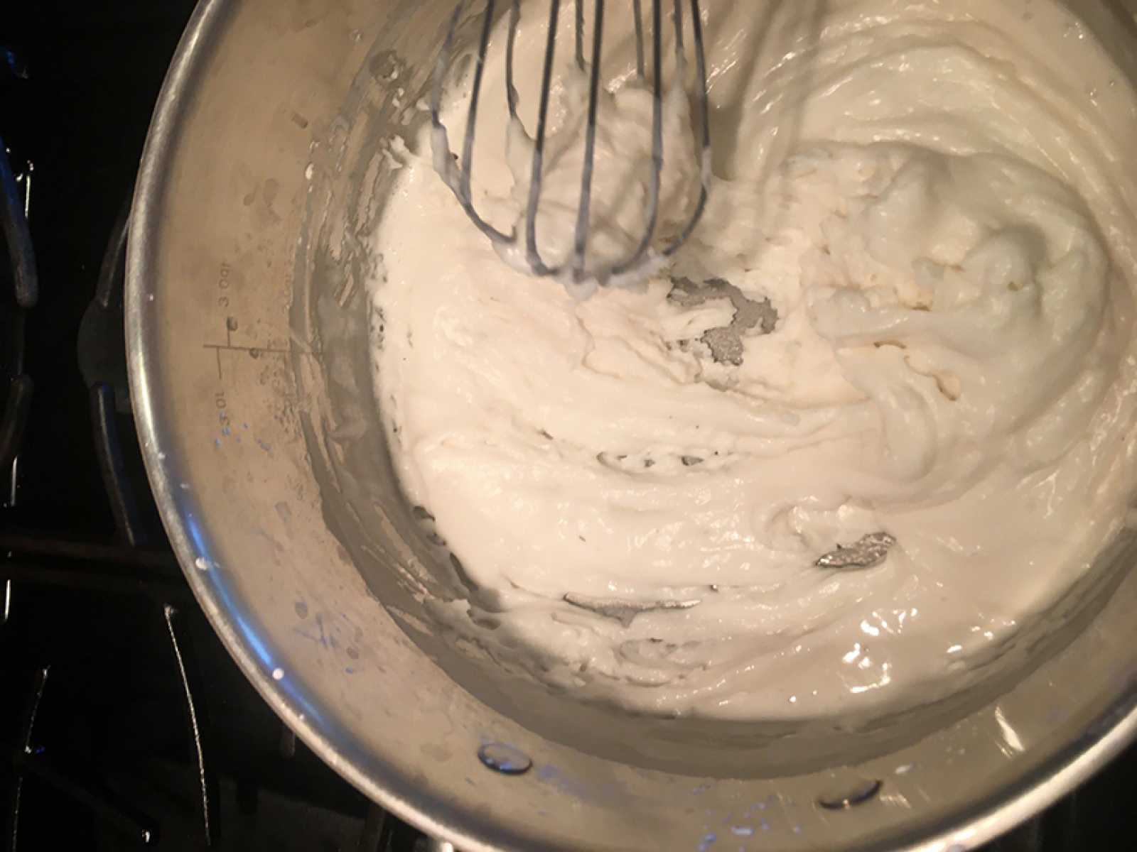 Set the pot over medium heat and stir until the ingredients start to boil. Smooth out any lumps and continue to cook until it becomes a thick consistency like mashed potatoes.
