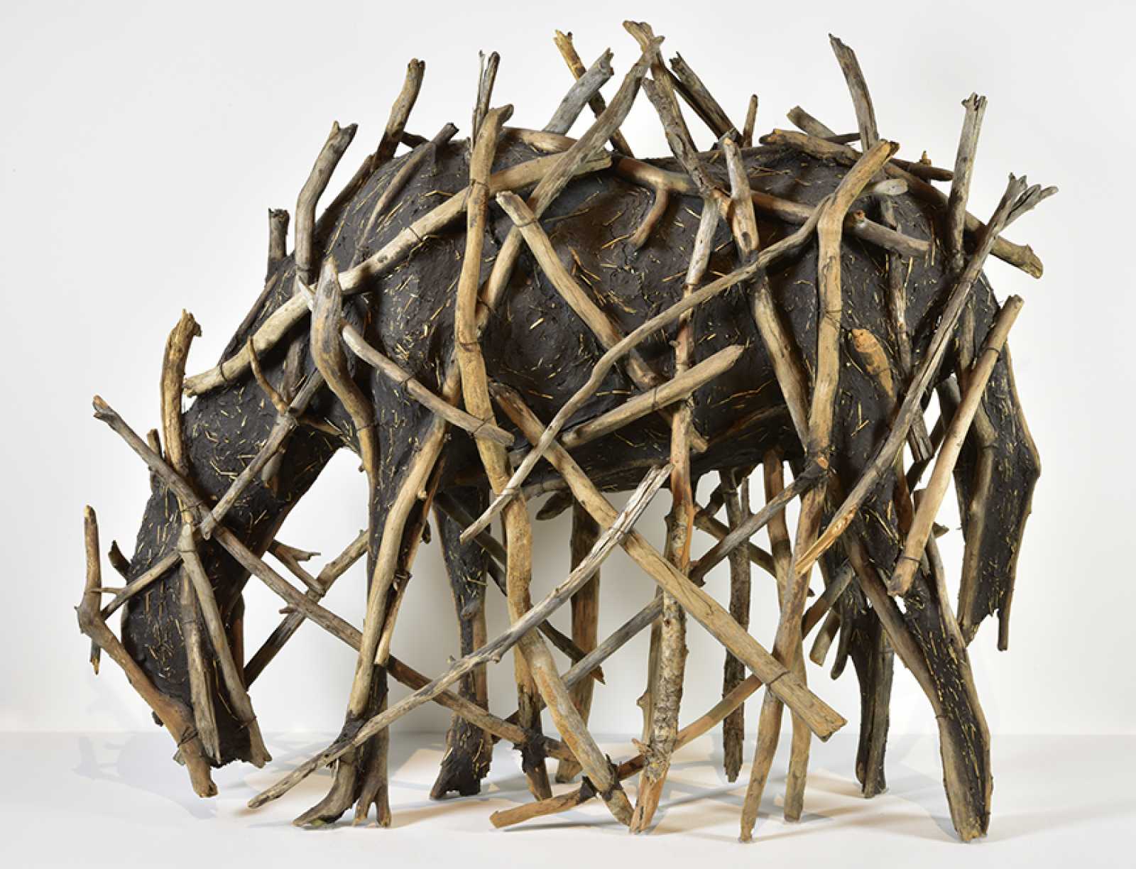 Deborah Butterfield (American, born 1949), Untitled (Horse), 1978, mud, sticks, 29 x 36 x 11 inches. Gift of Steve Chase, 15-1994.