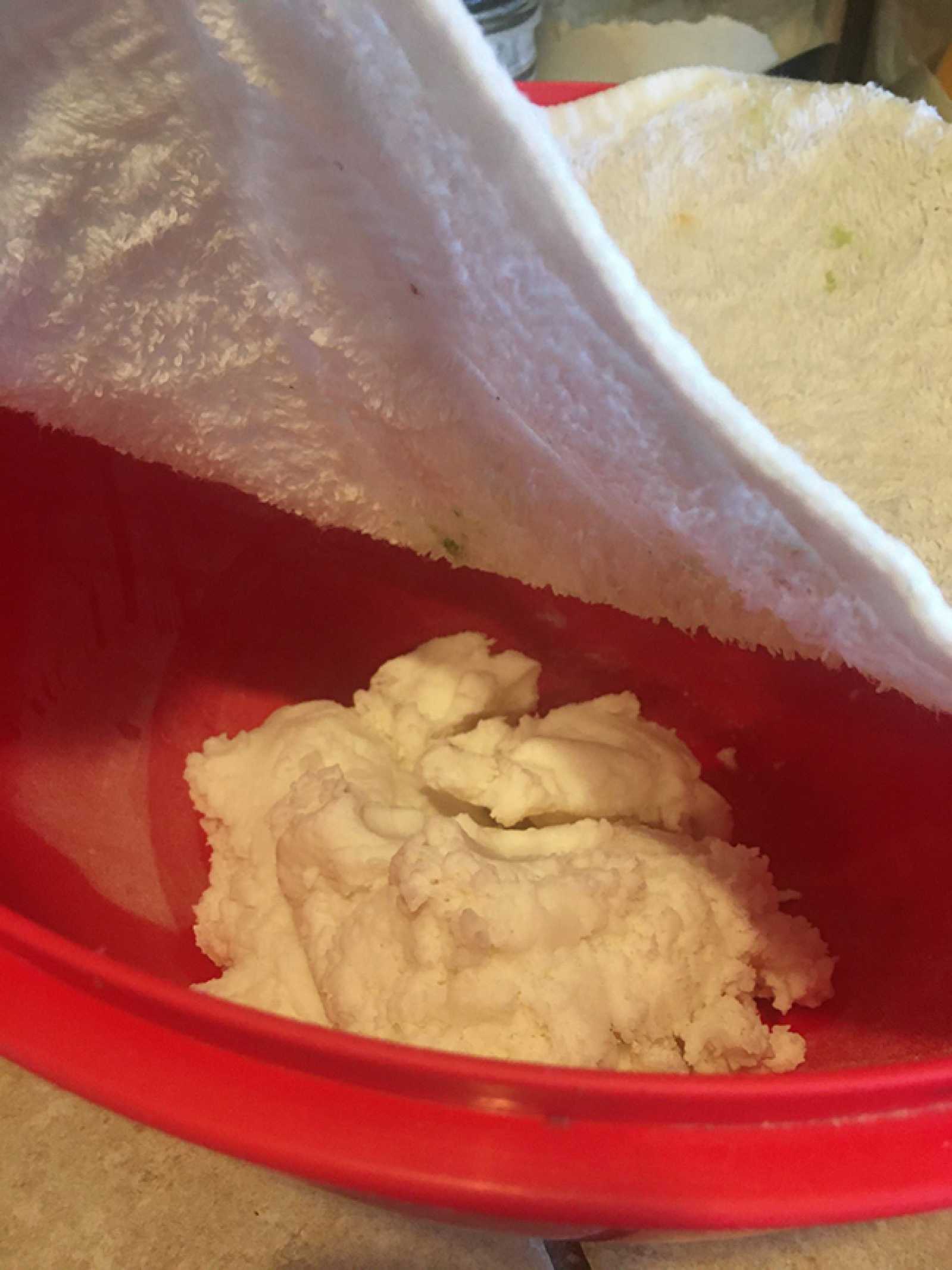 Use your spoon to carefully transfer the hot mixture into a large bowl. Place a damp towel over the top to preserve moisture.