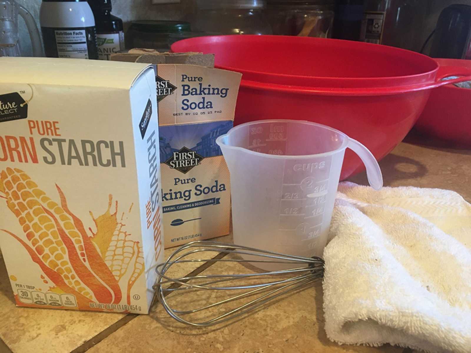Measure the baking soda, cornstarch and water, and then place them in a non-stick pot.