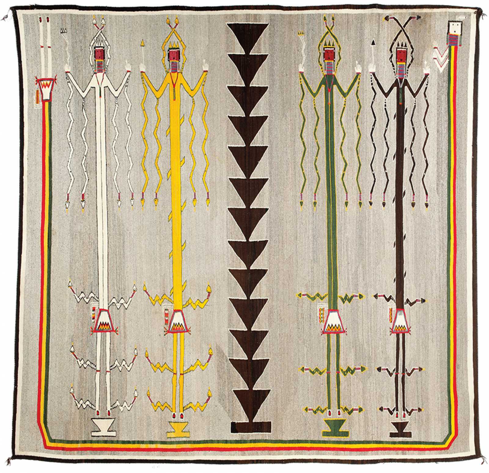 While the Navajo weaving tradition dates back over three hundred years, images of Yei, or gods, taken from sand-painting did not appear until the early twentieth century. Nonetheless, these textiles are not themselves considered sacred objects.