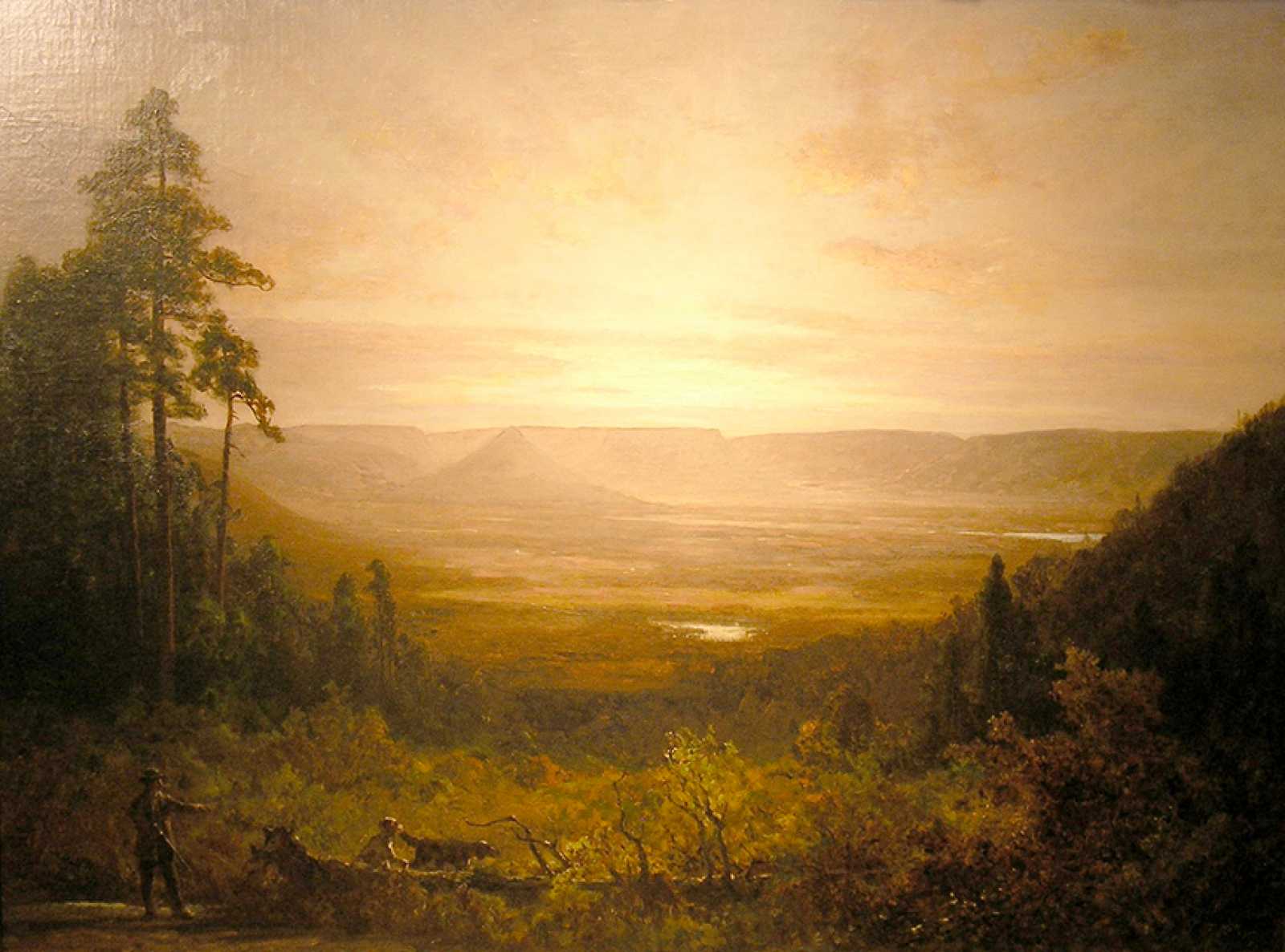 Thomas Hill, American, born England, 1829-1909, Hunter and Setters in the Foothills with the Great Basin Beyond, 1871, oil on canvas, 27 x 36 inches, Museum purchase with the William Holden Acquisition Fund, 1983. 29-1983.