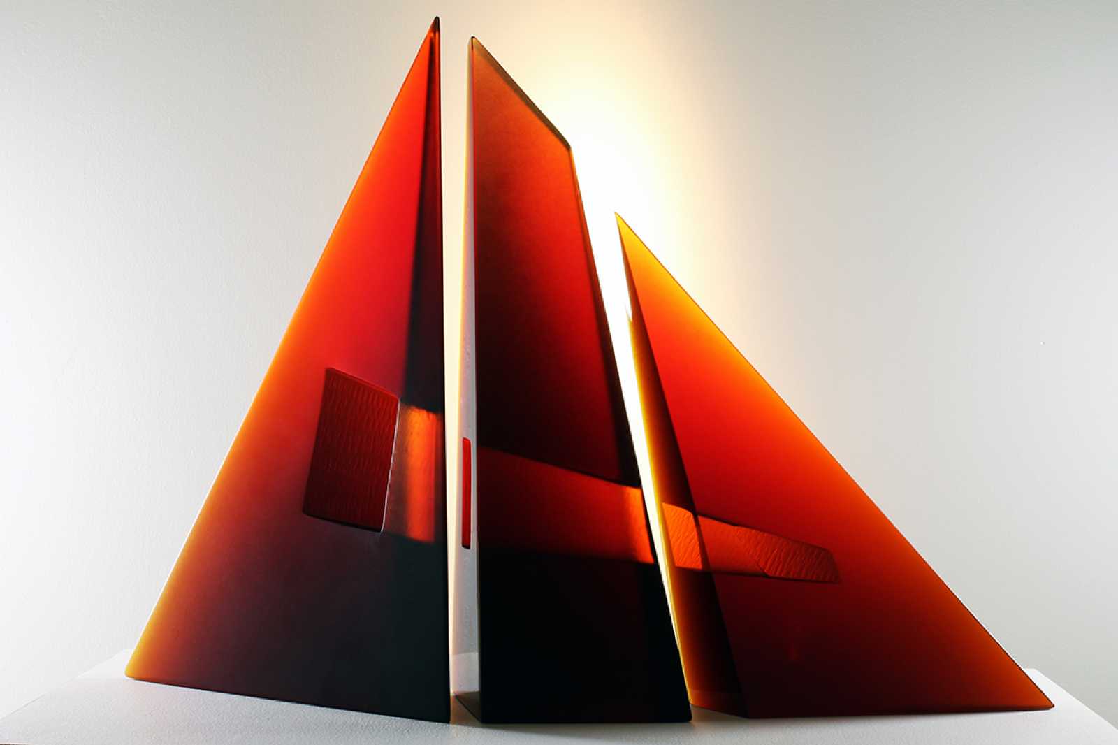 Emma Camden (New Zealander, born 1966), Passage-Red Amber, 2007, cast and cold-worked glass. Gift of David Kaplan and Glenn Ostergaard, 2019.96a-c.