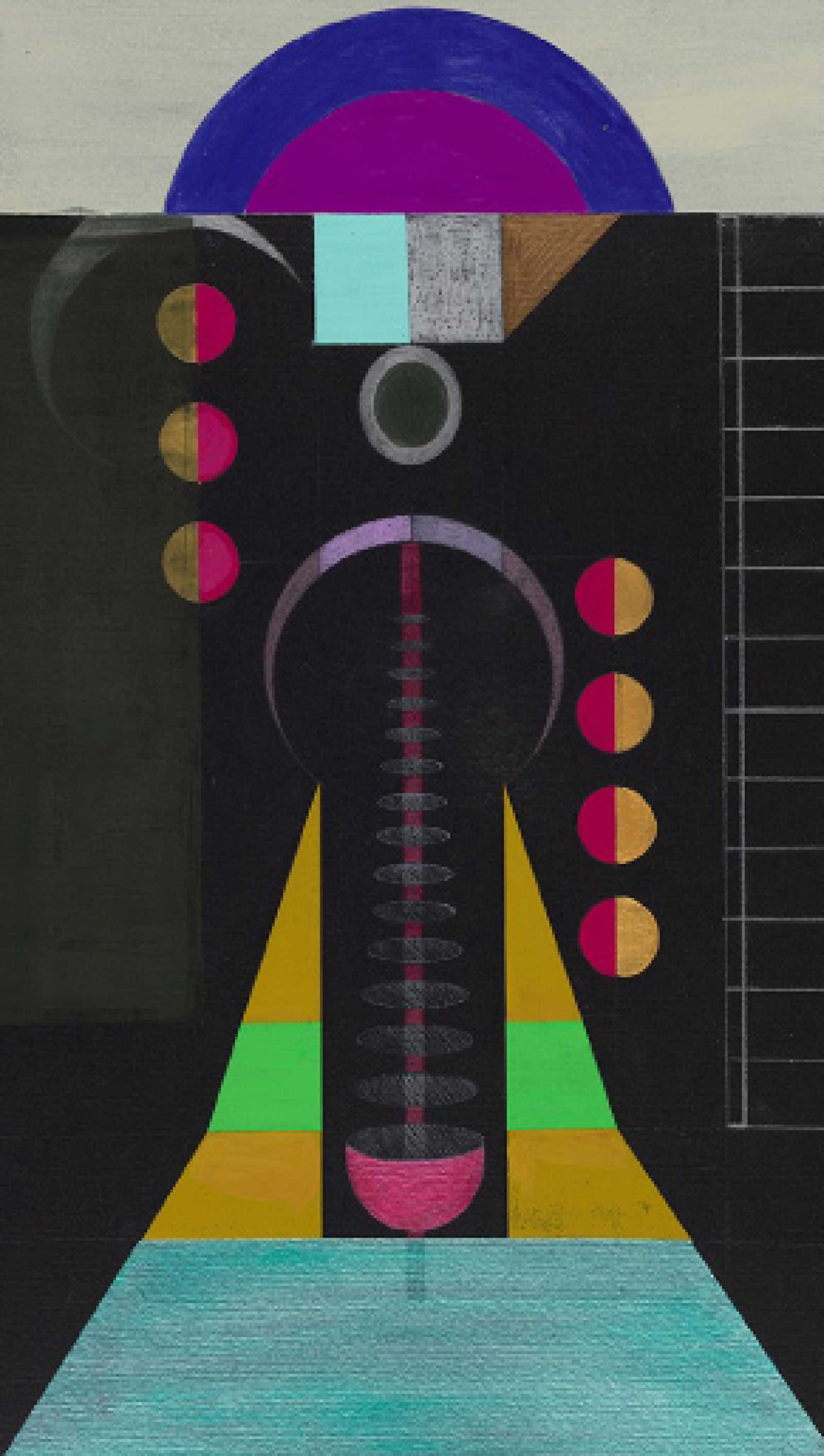 Hilma's Ghost, The High Priestess, 2021. Gouache, ink, and colored pencil on Fabriano Murillo paper, mounted on board, 17 × 9 3/4 in. (43.2 × 24.8 cm). Courtesy of the artists