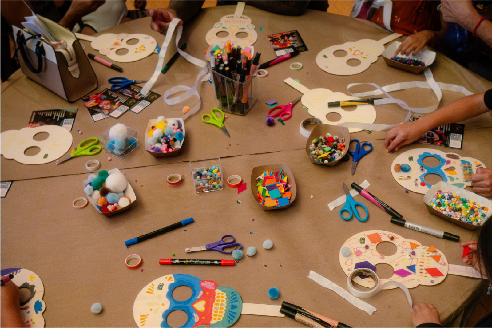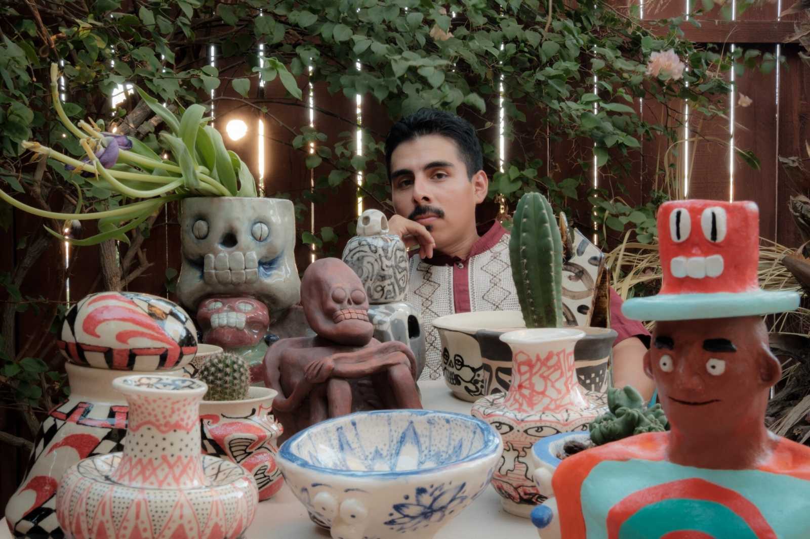 Flores created ceramic pieces in his home studio so guests could paint and embellish sculptures of their own. Add your loved ones names and place your artwork on your ofrenda for Dia de los Muertos.