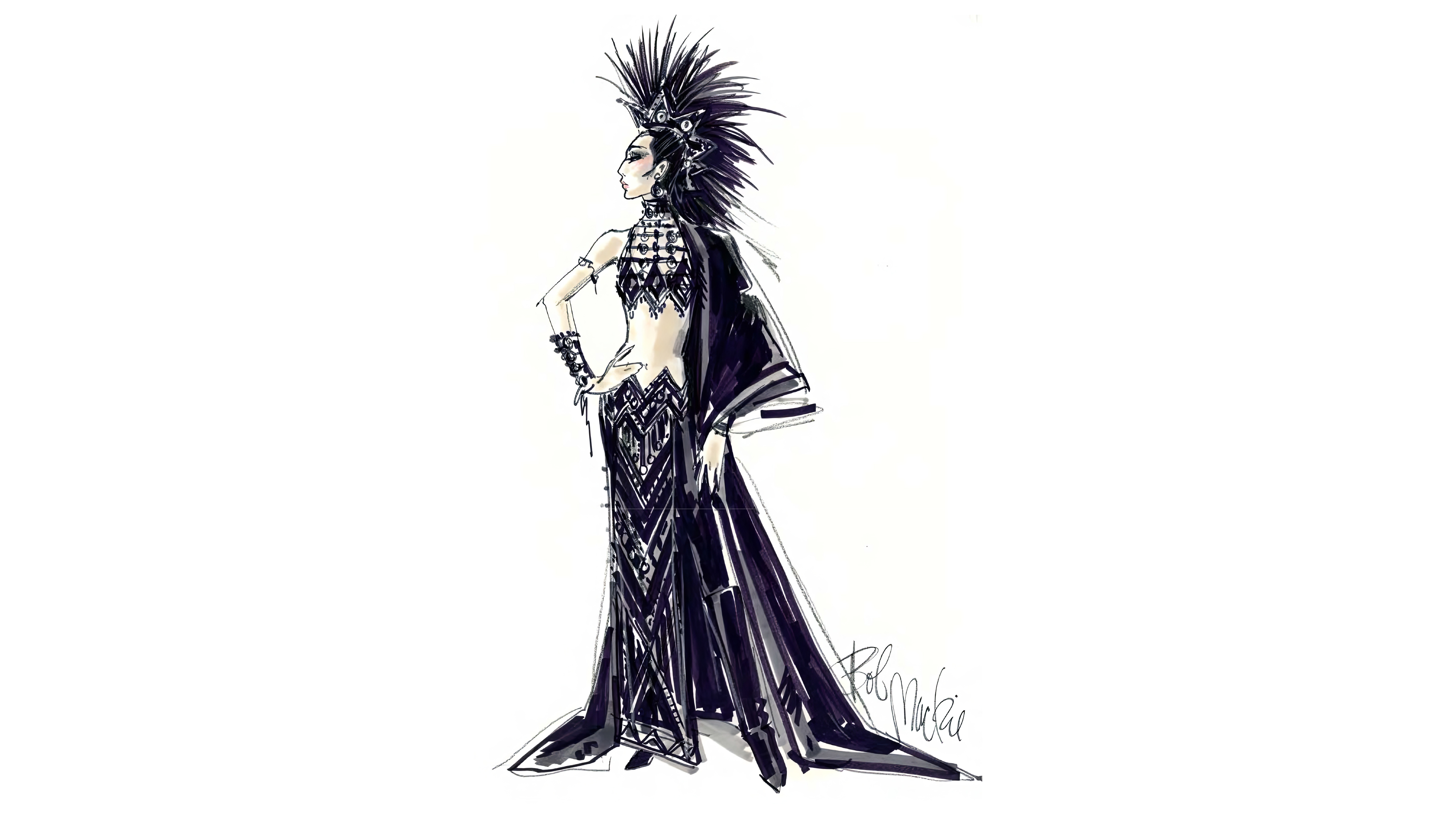 Featuring five original gowns and costumes alongside a curated selection of sketches created between the 1970s and the 2000s, the presentation highlights Mackie’s unmistakable blend of glamour, wit, and storytelling. The works on view reflect his collaborations with some of the most iconic performers, including Carol Burnett, Carol Channing, Cher, Diana Ross, Elton John, Liza Minnelli, Madonna, Mitzi Gaynor, and Tina Turner.
